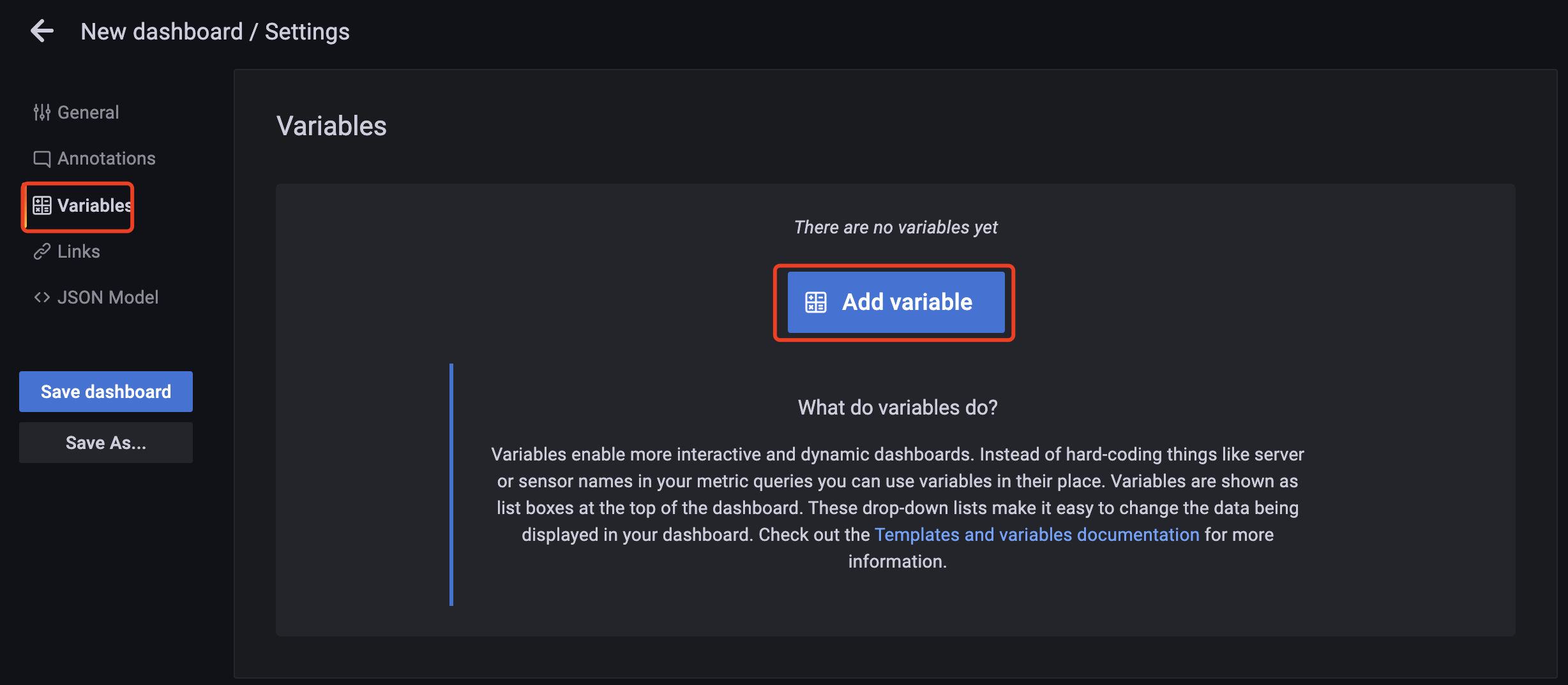 Apply Variables, enter the variable in the grafana panel and click the save button: