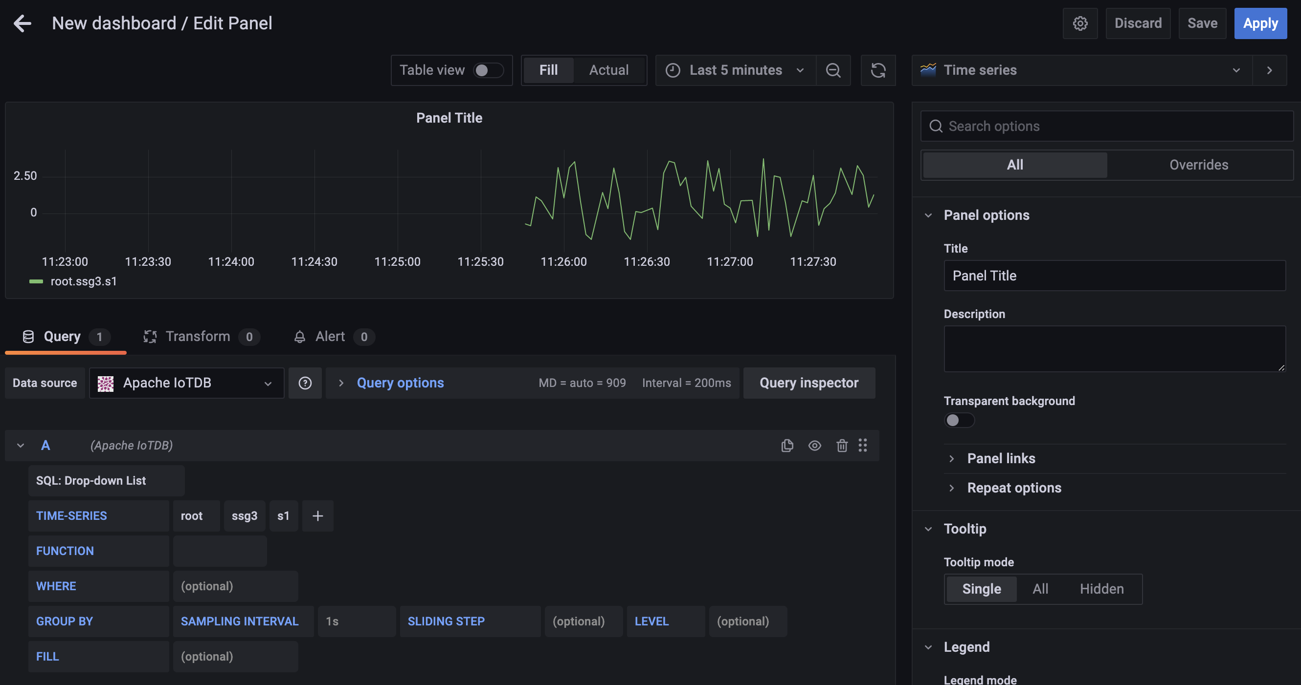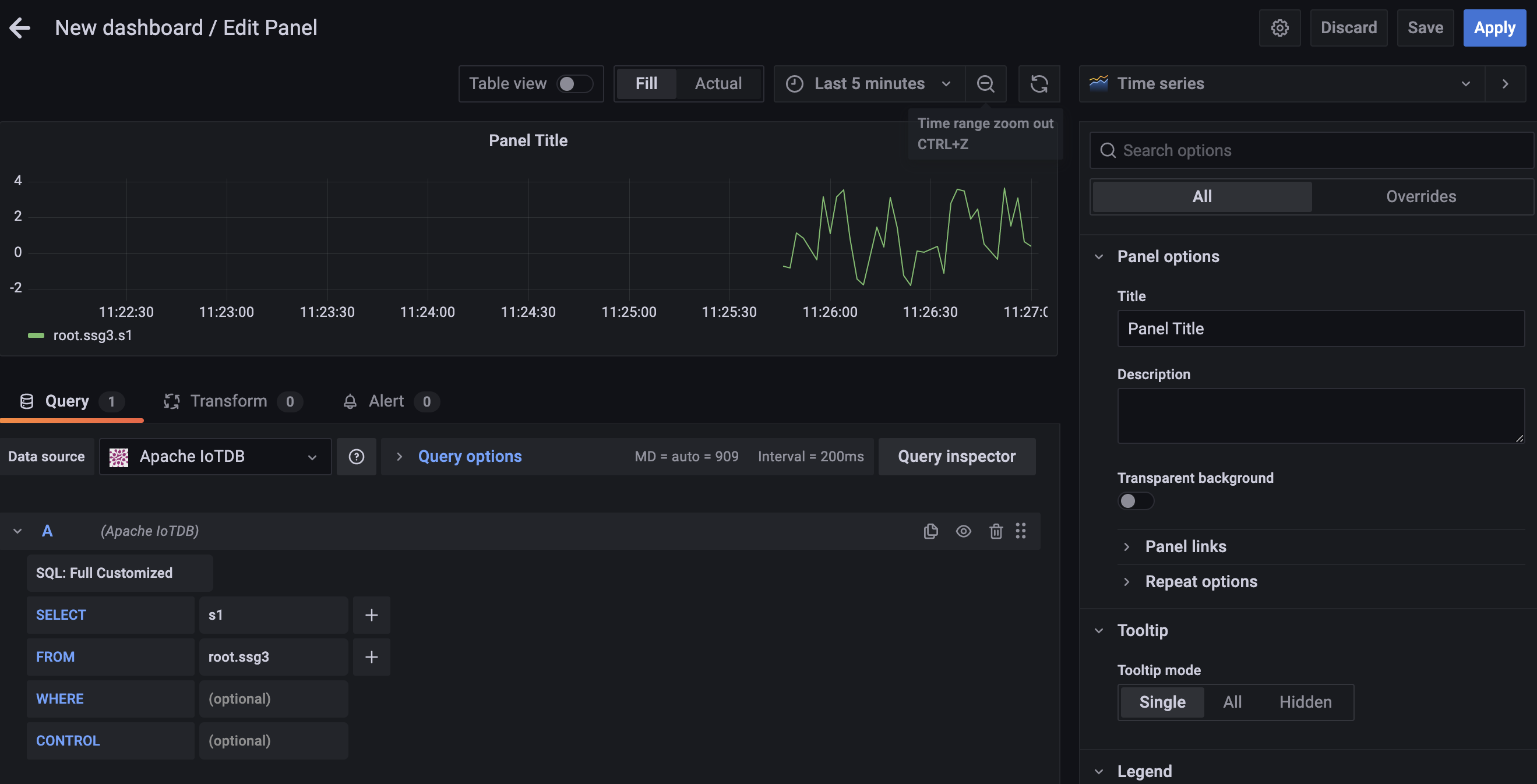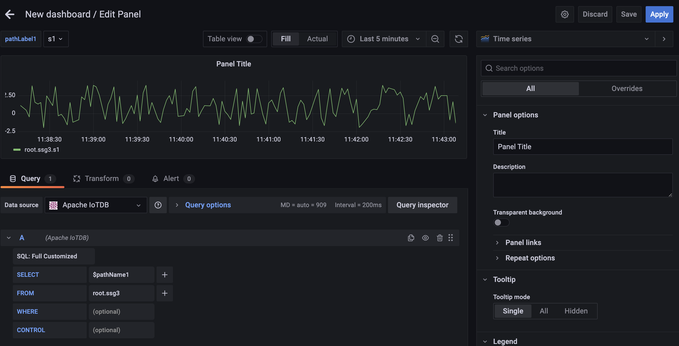 Grafana plugin supports SQL: Full Customized mode and SQL: Drop-down List mode, and the default mode is SQL: Full Customized mode.