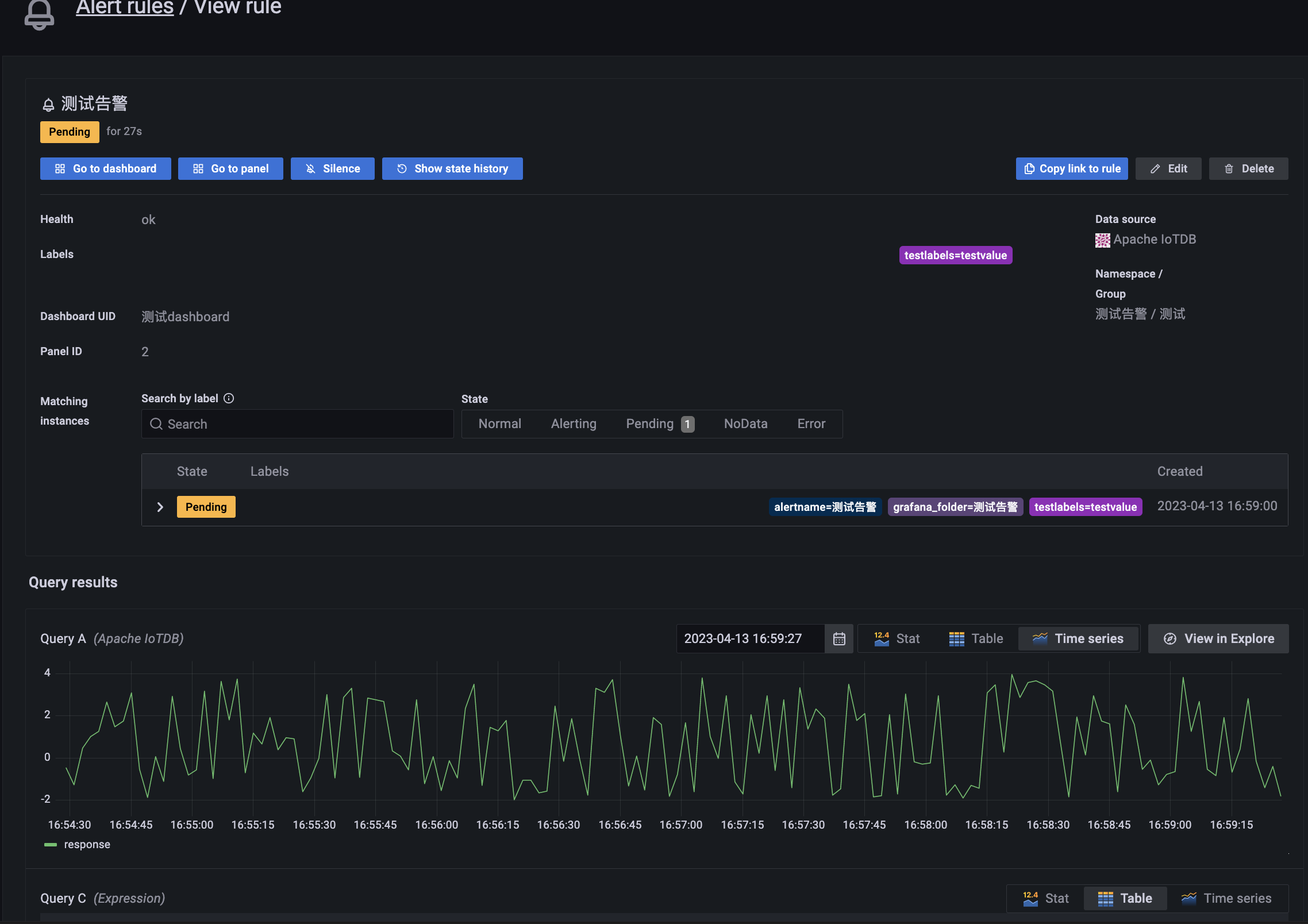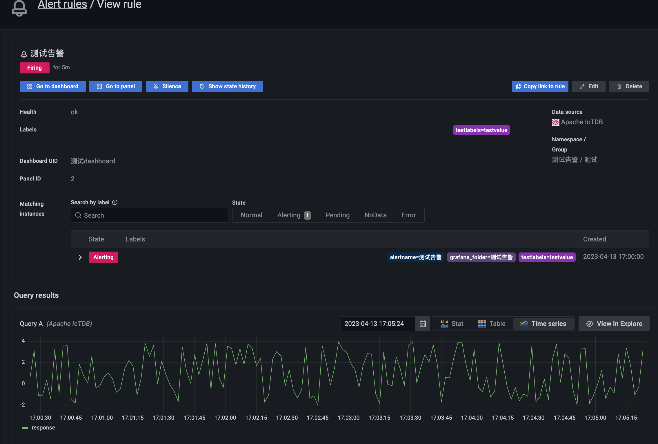 This plugin supports Grafana alert function.