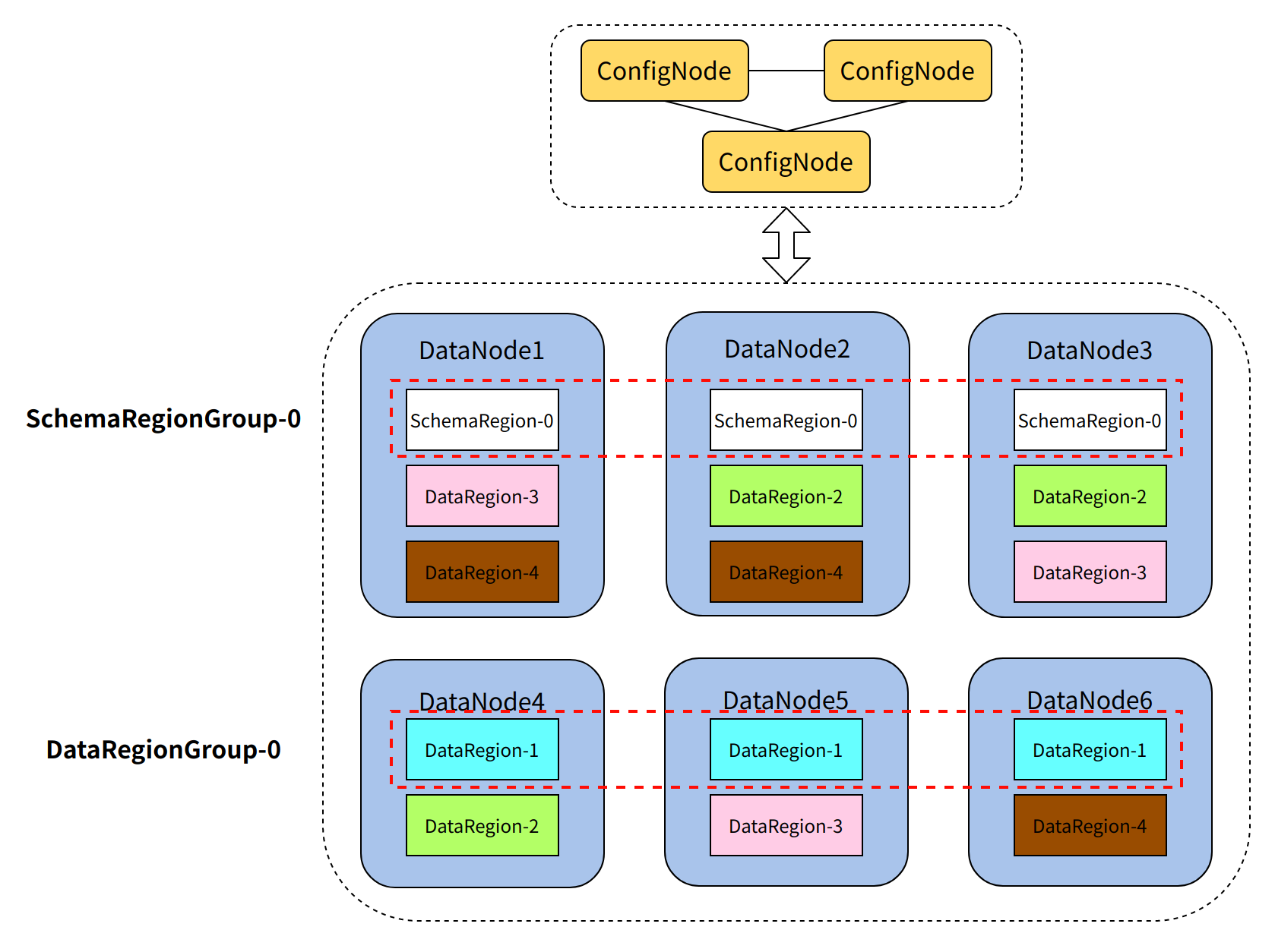 | ConfigNodeGroup | Logical Concept (Consensus Group) | Composed of all ConfigNode nodes in the cluster, maintaining consistent partition table information through a consensus protocol. |