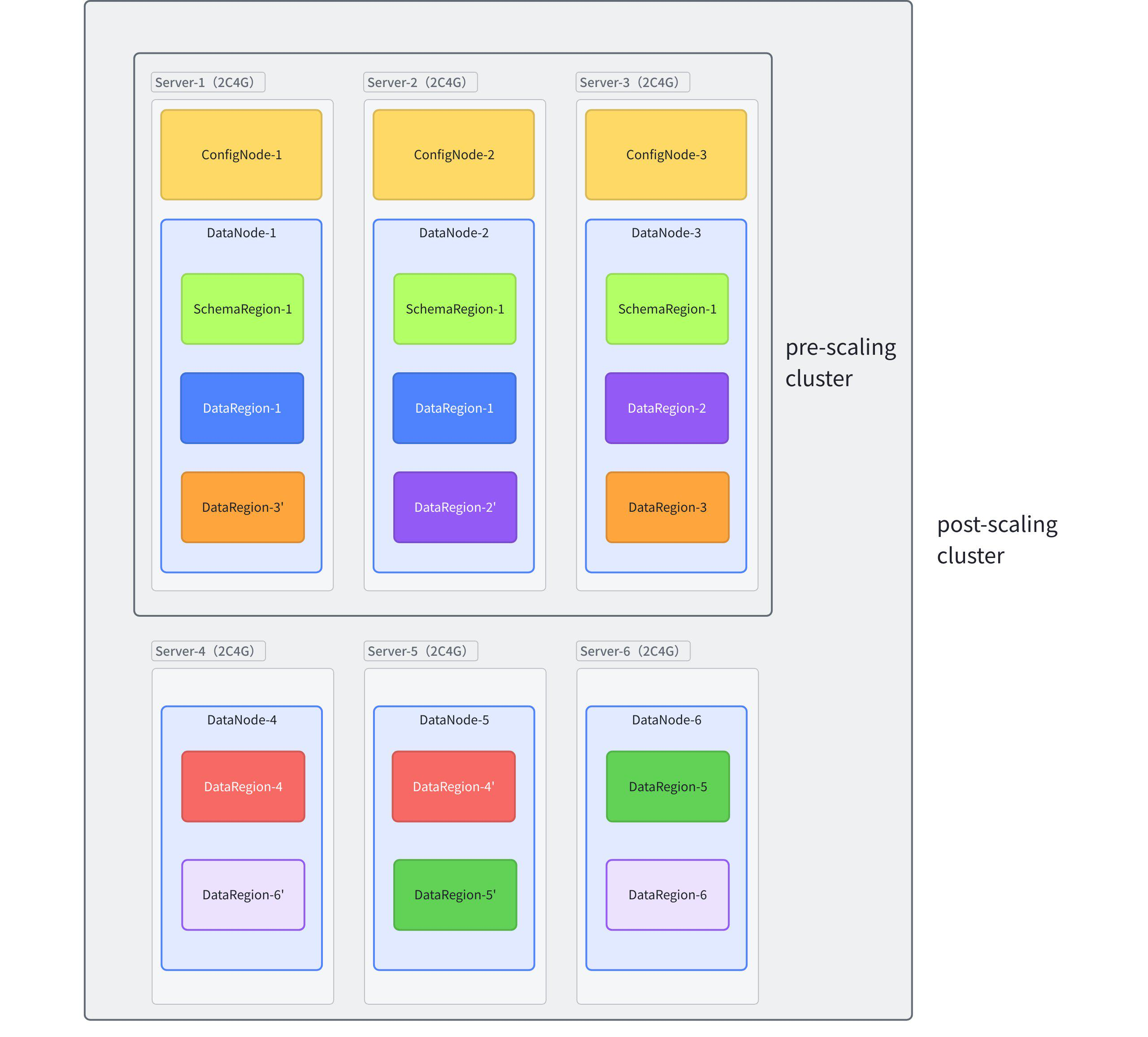 In IoTDB, data partition groups (DataRegionGroup) and metadata partition groups (SchemaRegionGroup) are the smallest units for read/write load, ensuring data consistency through the consensus group mechanism. Therefore, the essence of cluster scaling is to increase data partitions to enhance concurrent processing capability and throughput.